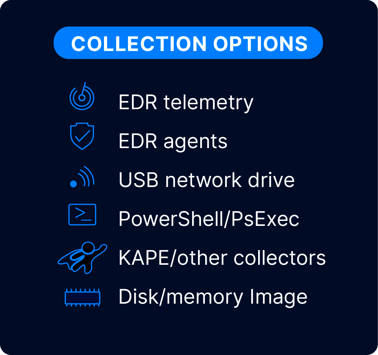 CollectUse the Cyber Triage Collector, EDR, or other 3rd party tool to collect endpoint data.